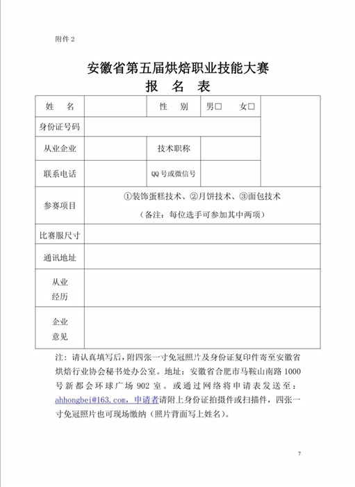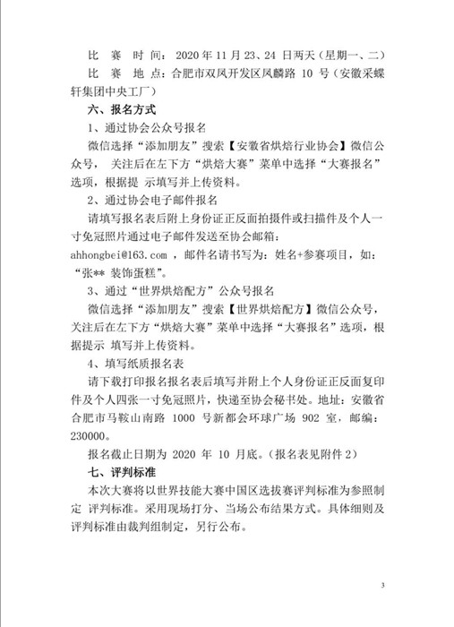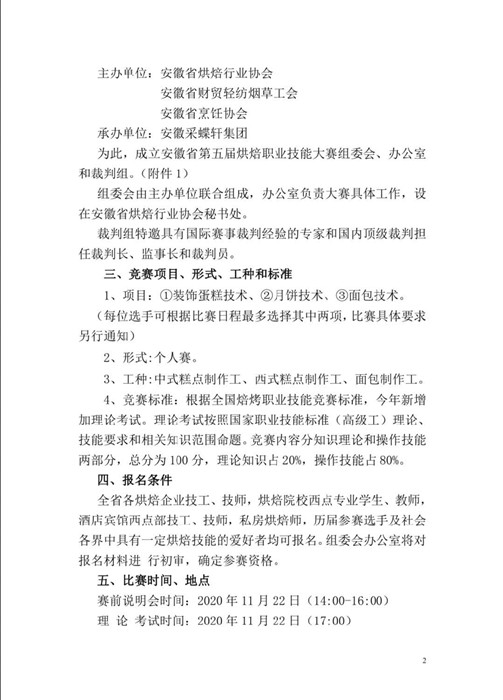 附:皖焙协字【2020】28号第五届烘焙职业技能大赛的通知