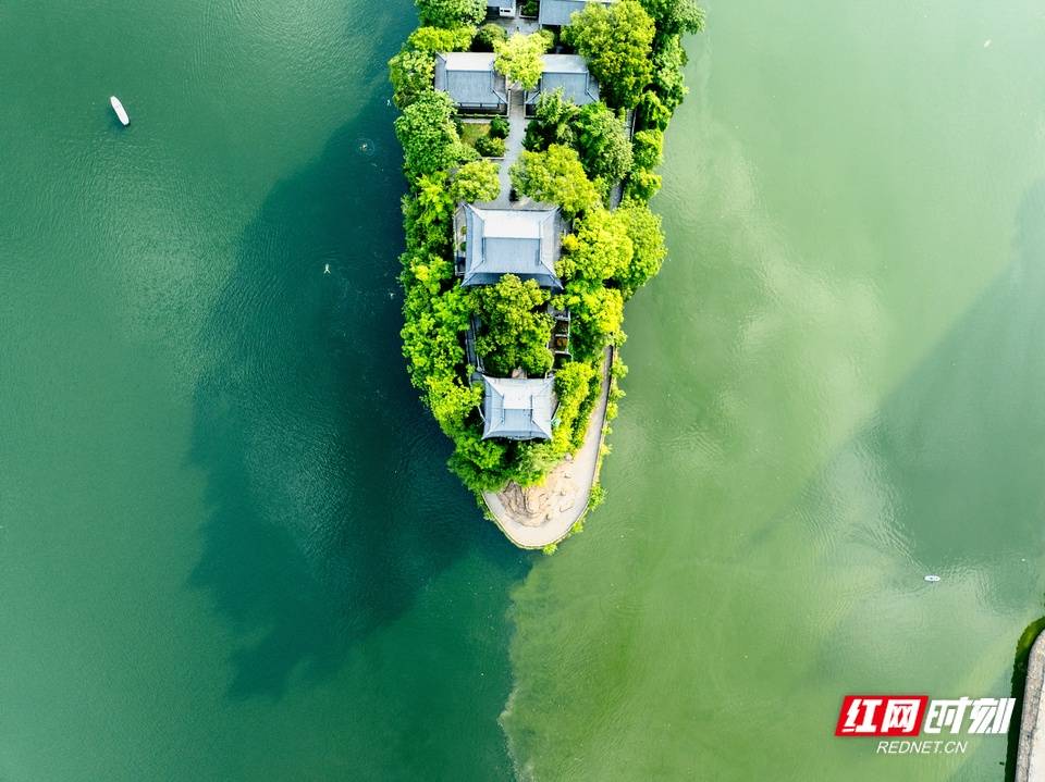 7月8日,蒸水与湘江正在衡阳石鼓(gu)书院一带交汇,两(liang)色江水分明,构成独特的“鸳鸯江水”景观。航拍视角(jiao)下,水色如泼墨(mo)晕染,一静一动,相映成趣。这一抹水墨(mo)文气(qi),既流(liu)淌于湘江的碧(bi)波(bo)之上(shang),也浸润着千年书院的文脉传承,承载(zai)着“绿净没有可(ke)唾”“尽(jin)湖南,山明水秀”等诗文意(yi)境。