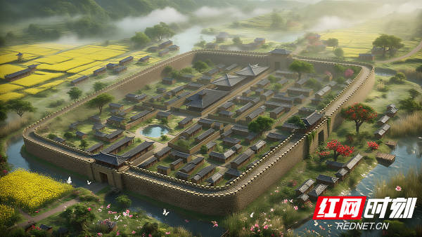 根(gen)据(ju)史料内(nei)容,团(tuan)队制作的秦洞庭(ting)郡迁陵县(现里耶古城考古遗(yi)址公园(yuan))AIGC俯视图。