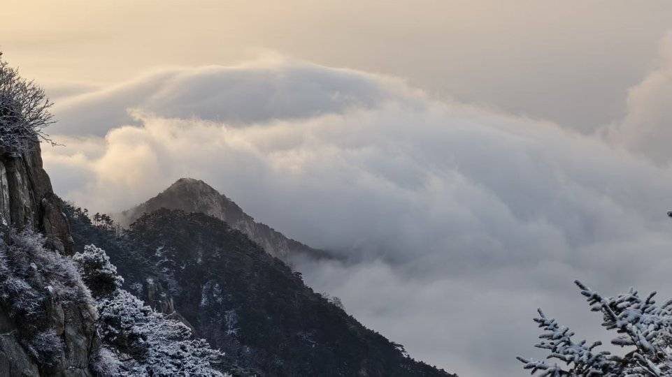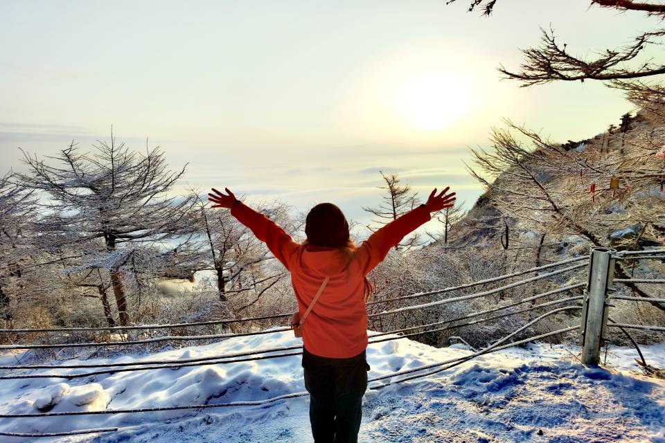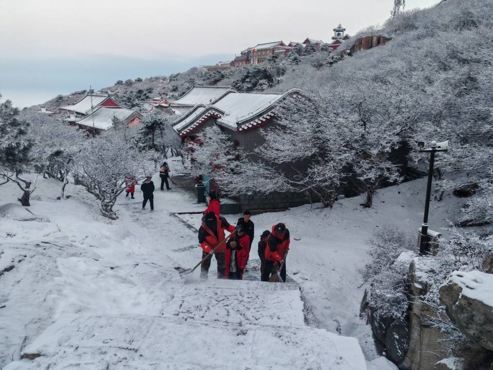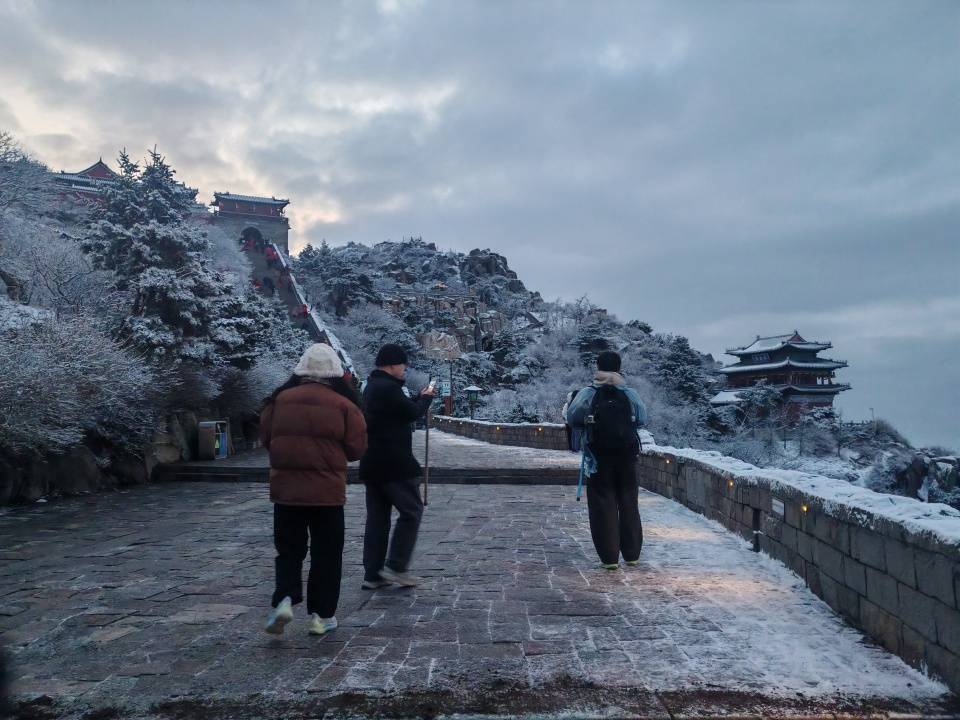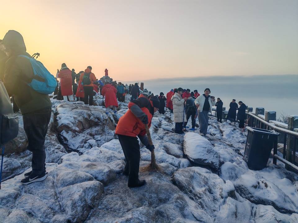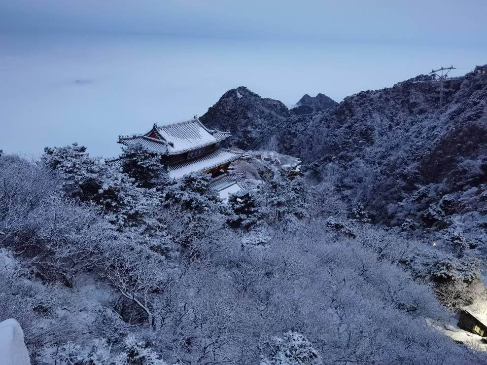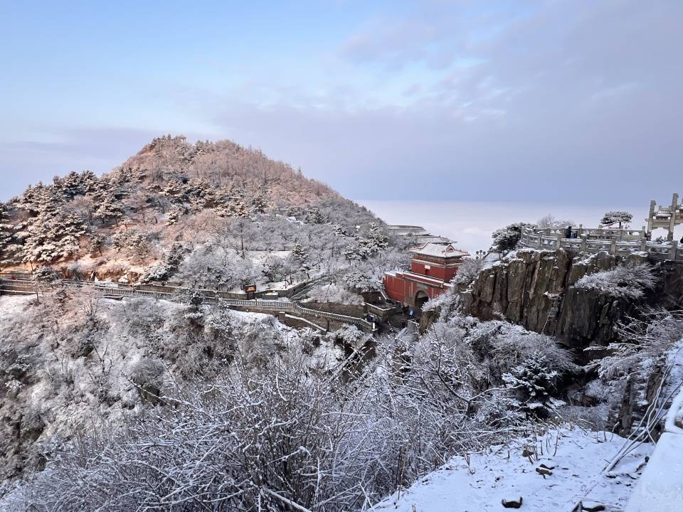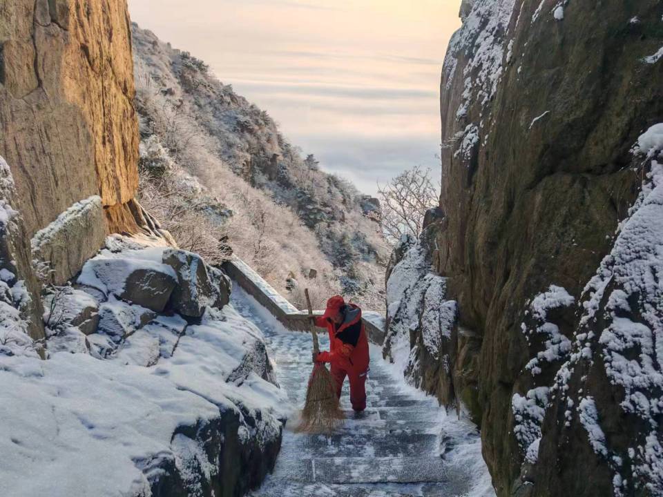 岱顶被皑皑白雪覆盖,古(gu)修建群在雪中(zhong)更显庄严庄严,松枝挂雪,雾凇晶莹,构成一幅自然水(shui)墨(mo)画卷。登(deng)高远眺,云(yun)雾自山谷(gu)翻(fan)涌而上,将群峰揽入怀中(zhong),时而漫过石阶,时而缠绕檐(dan)角,与古(gu)建相映成趣,宛若(ruo)水(shui)墨(mo)长卷。日出时分,朝阳破云(yun),金光洒落,云(yun)海翻(fan)涌成浪,更添壮丽。(中(zhong)华泰山网记者 刘小东 通(tong)讯员 王德利 燕瑞国 赵兴忠 付加志)